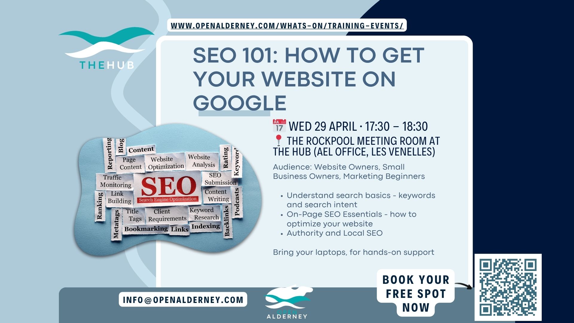 If you would like to attend any of the courses below or drop in, please email info@openalderney.com